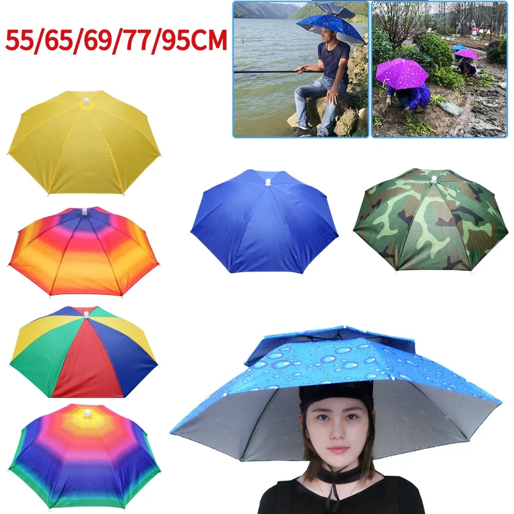 Foldable Umbrella Hat - Waterproof Hands-Free Rain & Sun Protection for Fishing, Camping & Beach (55-95CM Adjustable)